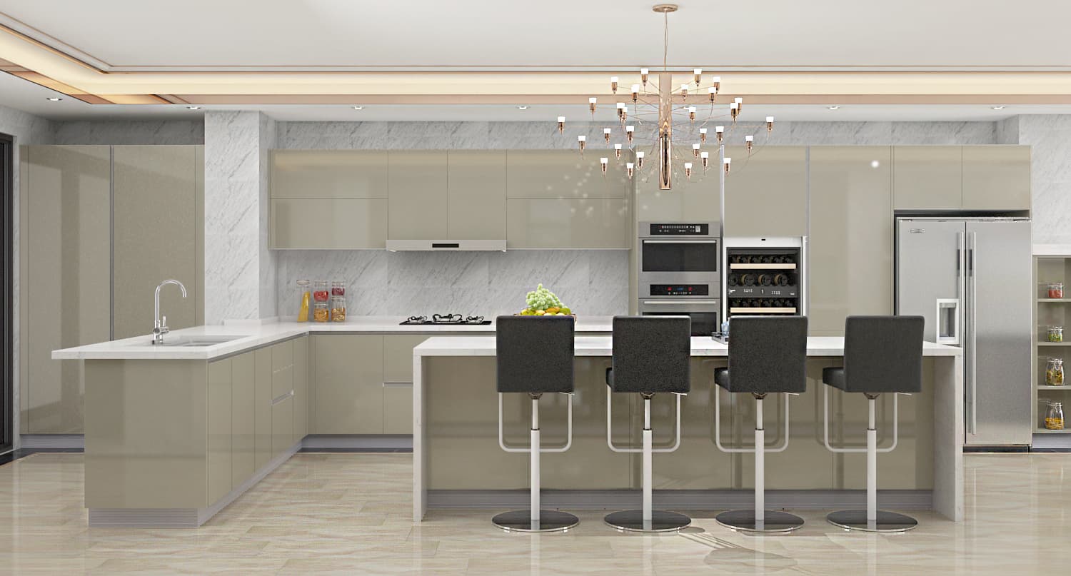 Modern Luxury kitchen with lacquer finish door, big island makes the product design more beautiful and functional.